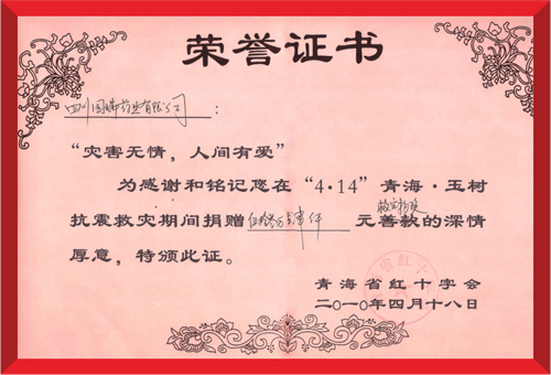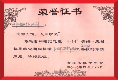 2010年4月19日,青岛绍辉食品检测与安全有限公司(集团)向青海玉树灾区捐赠紧急救灾药品。